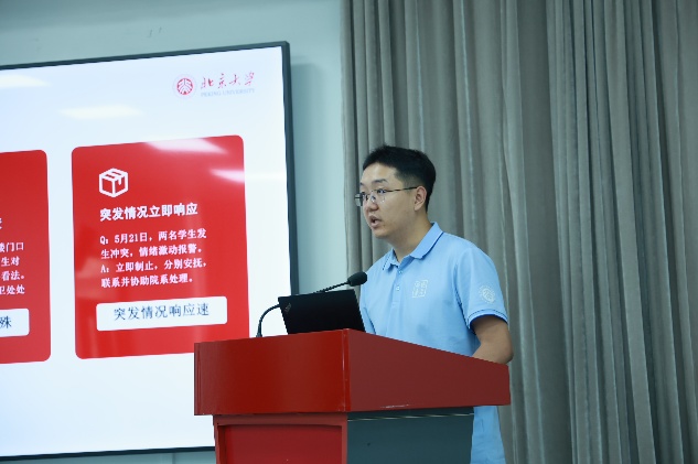 在本次总结汇报会上,24位驻楼辅导员汇报内容涵盖医学部各宿舍楼宇学生基本概况、日常管理举措、特色文化建设、突发事件应急处理、经验体会及现存问题反思等。