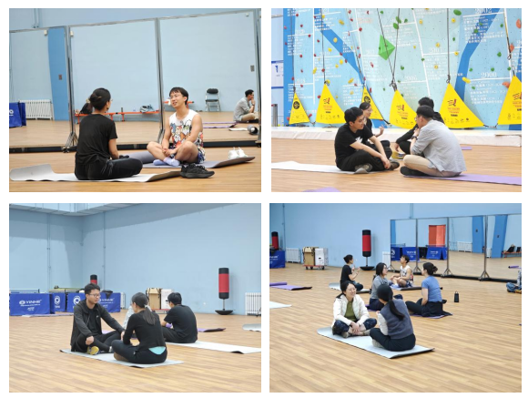 另一位同学则用“平静、活跃、释压”来总结活动的节奏:“整个过程就是从平静到活跃,再到最后的放松。有一段时间没有想其他事情,可以沉浸在自己和身体的互动里。”