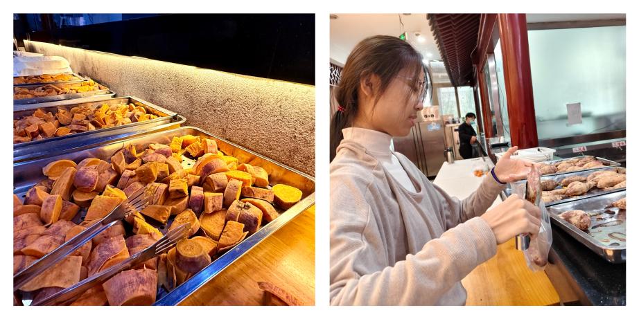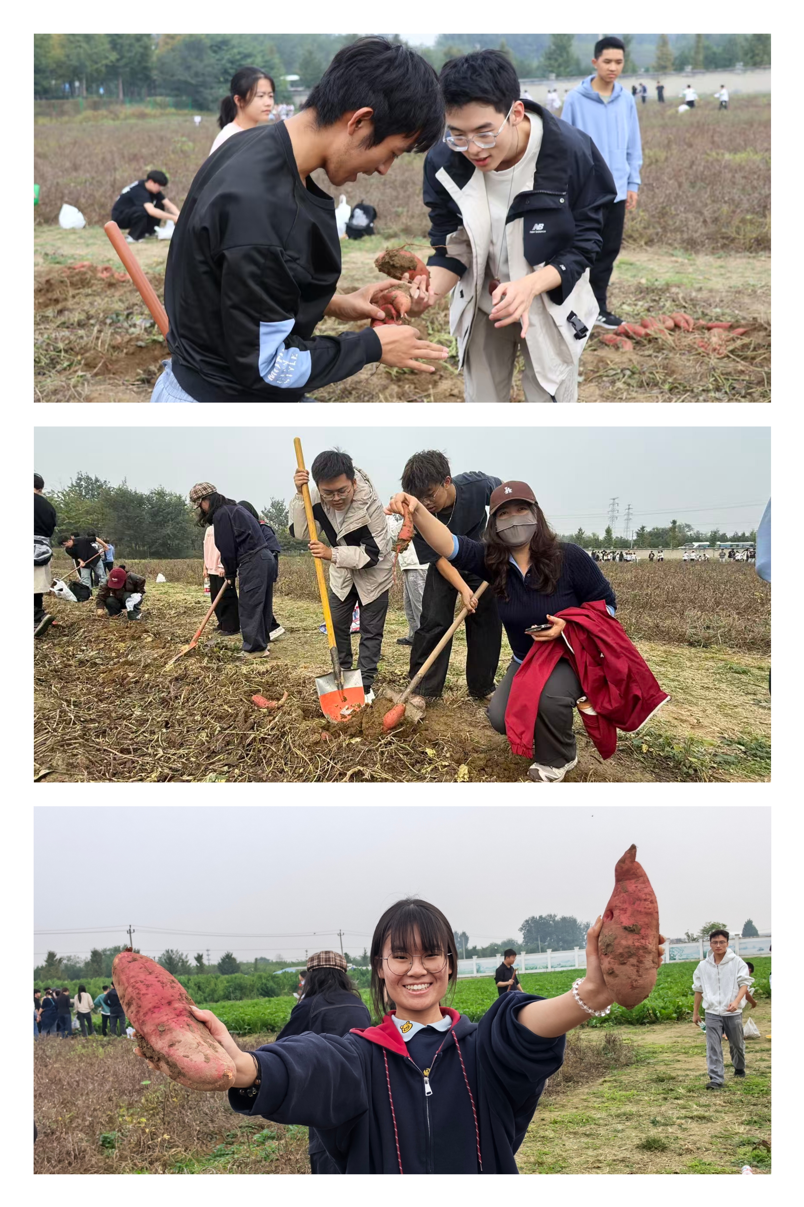 同学们将从试验田收获的红薯带回燕园,在食堂师傅们的精心加工下,红薯蒸烤后散发的温暖甜香弥漫了整个饭厅,同学们齐聚一堂,分享着两种不同的口感,唇齿间流淌的不只是自然的甘甜,更是劳动过后最纯粹、最直接的喜悦。这场从田间到餐桌的完整体验,让“一分耕耘,一分收获”的道理变得可知可感,也为此次劳动教育课写下了甜美而温暖的注脚。药学四班朱子铭说到他的感受“一抔土,一捧薯,躬耕方知收获不易。作为医学预科生,这次经历更让我懂得:从沃野到万家,守护康宁的初心与农人耕耘的坚守何其相似。”还有药学二班许崇戎同学也说道:“这次活动,让我读懂了红薯跨越山海的传奇,更体会到劳动的艰辛与乐趣——弯下腰的每一步,掀起锹的每一铲,都是与土地最踏实的对话。”