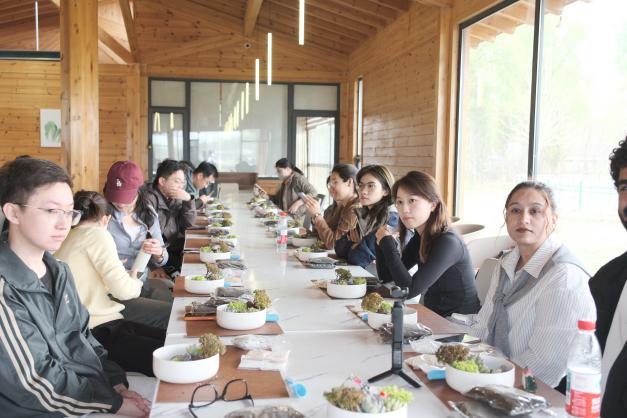 同学们沉浸创作螺钿和多肉盆栽