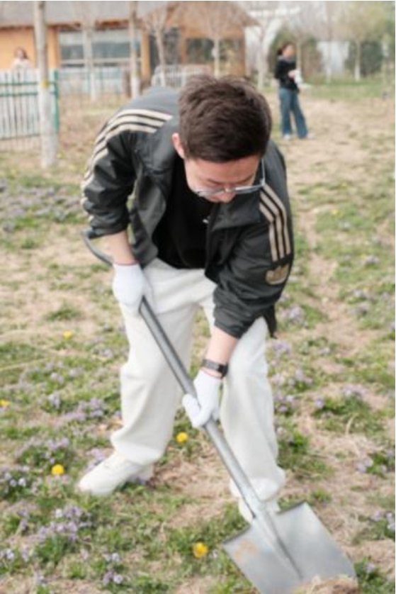 下午14:00,活动进入植树环节。农艺老师首先示范了挖坑、栽种、培土、浇水的正确步骤。紧接着,同学们热火朝天地行动起来。虽然动作还不够熟练,但每个人都格外认真。半小时后,数十棵棵树苗整齐地挺立在土地上。同学们与自己亲手种下的树苗合影留念,“希望小树和我们一样,在阳光下茁壮成长。”一位同学在树旁插上了自己写的许愿牌。