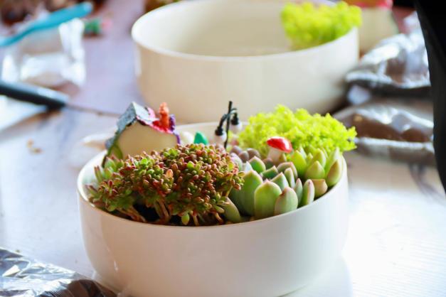 手工老师讲解螺钿和多肉盆栽创作方法