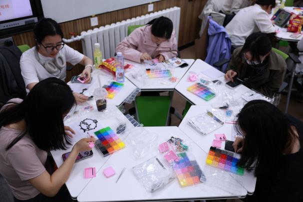 人间四月,手作暖心。为缓解新学期学业压力,丰富学生课余文化生活,4月15日晚,由1号楼、2号楼、7号楼、8号楼、中南楼驻楼工作组联合举办的“指尖创艺·拼趣时光”拼豆DIY活动在医学部逸夫楼207教室圆满落幕。来自五栋宿舍楼的四十余名同学齐聚一堂,在像素世界中感受手工乐趣,在协作竞速中增进楼宇情谊。