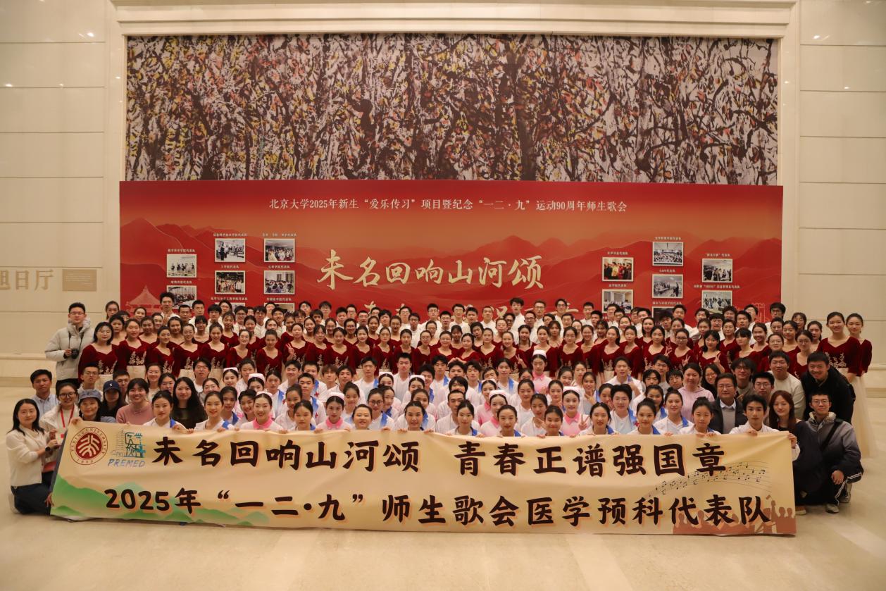 事隔经年,停留凝望,战旗飘扬,初心不忘。2025年12月6日晚,北京大学2025年新生“爱乐传习”项目暨纪念“一二·九”运动90周年师生歌会在北京大学百周年纪念讲堂隆重举行。医学预科代表队携原创曲目《何以回首》荣获甲组最佳原创视频奖、合唱表演单元二等奖。该曲目由2025级临床医学本科生刘润泽等作曲,2025级口腔医学本科生谢一凡等同学作词,以医者视角回望峥嵘岁月,用旋律诉说使命担当。
