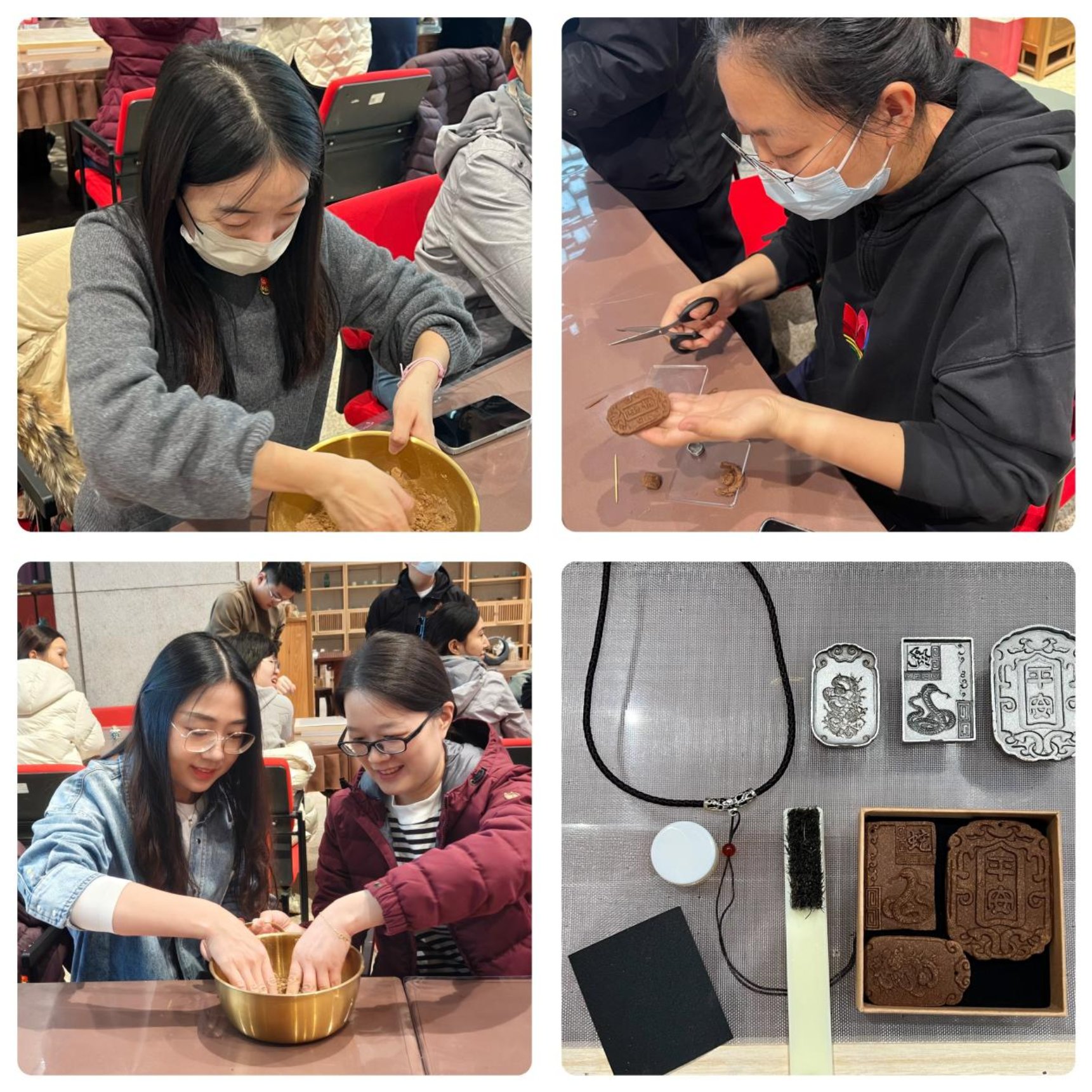 大家依循古法,分组接力调和香泥,醒泥、揉团、压模、修型、脱模,空气中弥漫着桂花和薰衣草香等天然香料复合而成的醇厚气息,指尖感受着药材从粉末到凝合成型的微妙变化。这个过程,不仅是制作一件可随身携带、香气绵长的工艺品,更是一次与古人对话、与传统接榫的精神体验。一枚枚香牌最终成型,这不仅是活动的成果,更是中华优秀传统文化可触可感、生动鲜活的载体,提醒着支部同志们作为教育工作者,在育人实践中亦需秉持同样的“匠心”,精耕细作,久久为功。