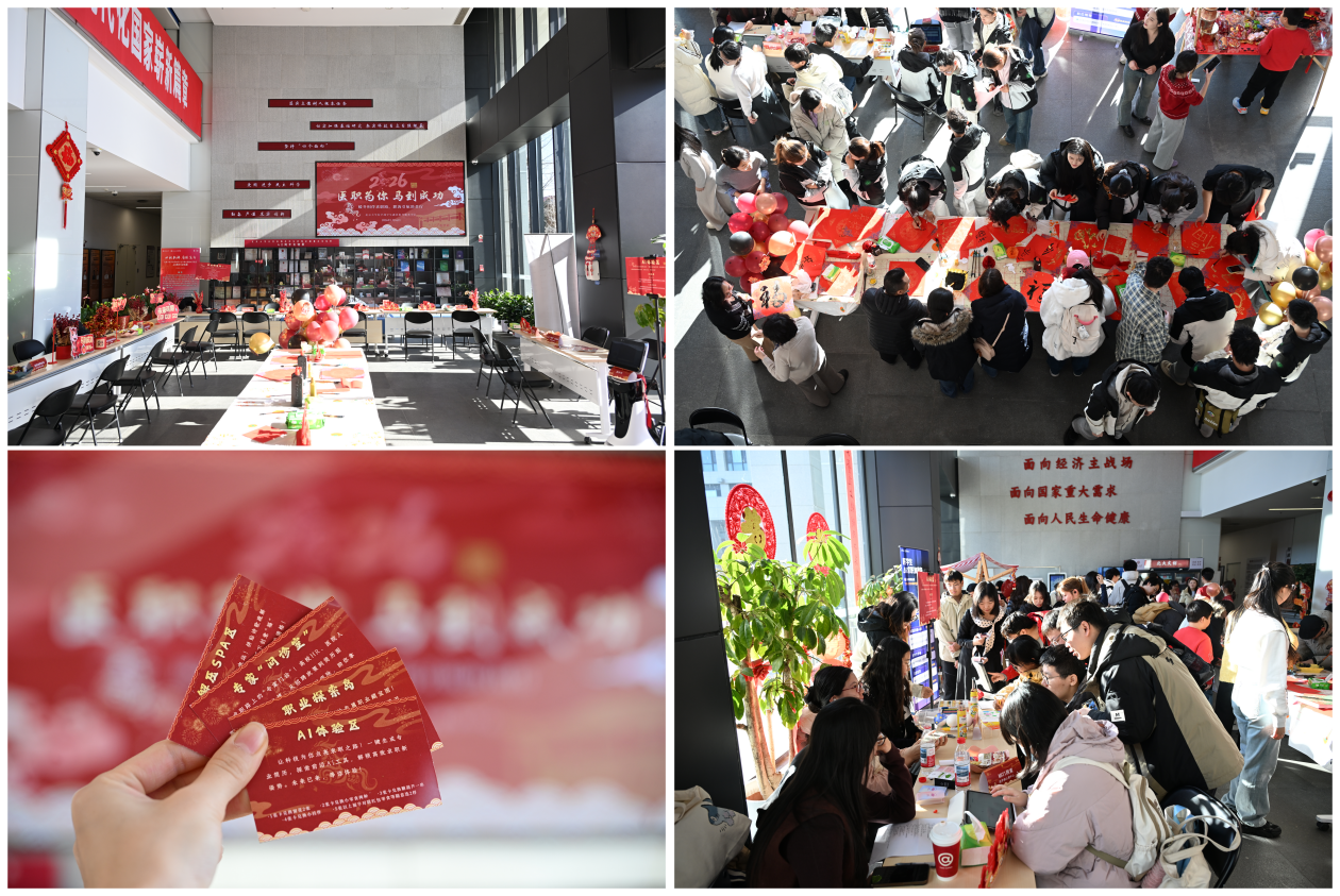 为提升毕业生的求职竞争力和职业适应能力,本次活动以互动体验为核心,创新设置了“专家‘问诊’室”、“职业探索岛”、“解压SPA区”、“AI体验区”及“福气2026书法区”五大主题板块,吸引了众多在校学生踊跃参与。