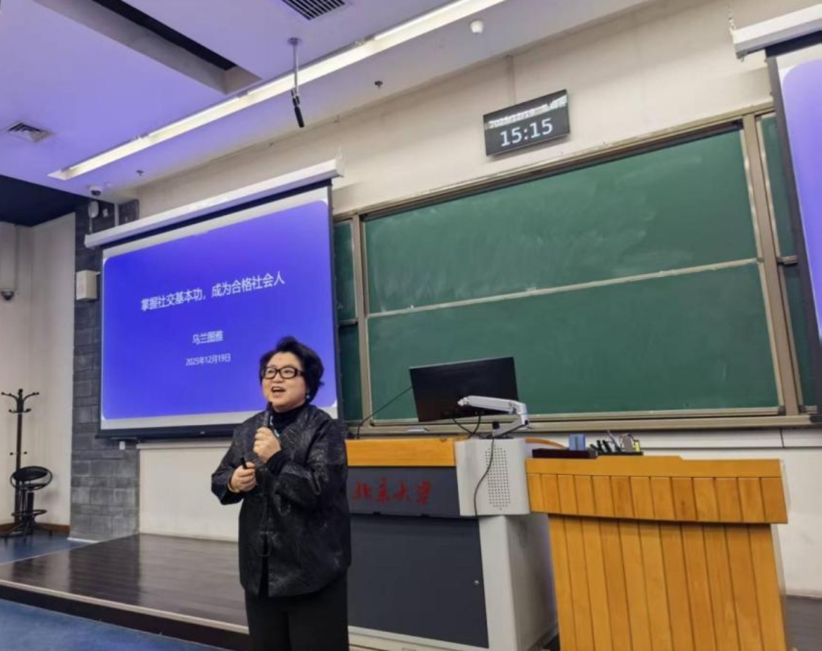 在最后的互动交流环节,同学们围绕具体情境积极提问,乌兰图雅老师逐一给予了细致解答,并对同学们感兴趣的社交主题推荐了相关书籍。她鼓励大家将社交视为一项需要长期修炼的功课,从每一次主动问候、每一次清晰回复、每一次换位思考开始实践。